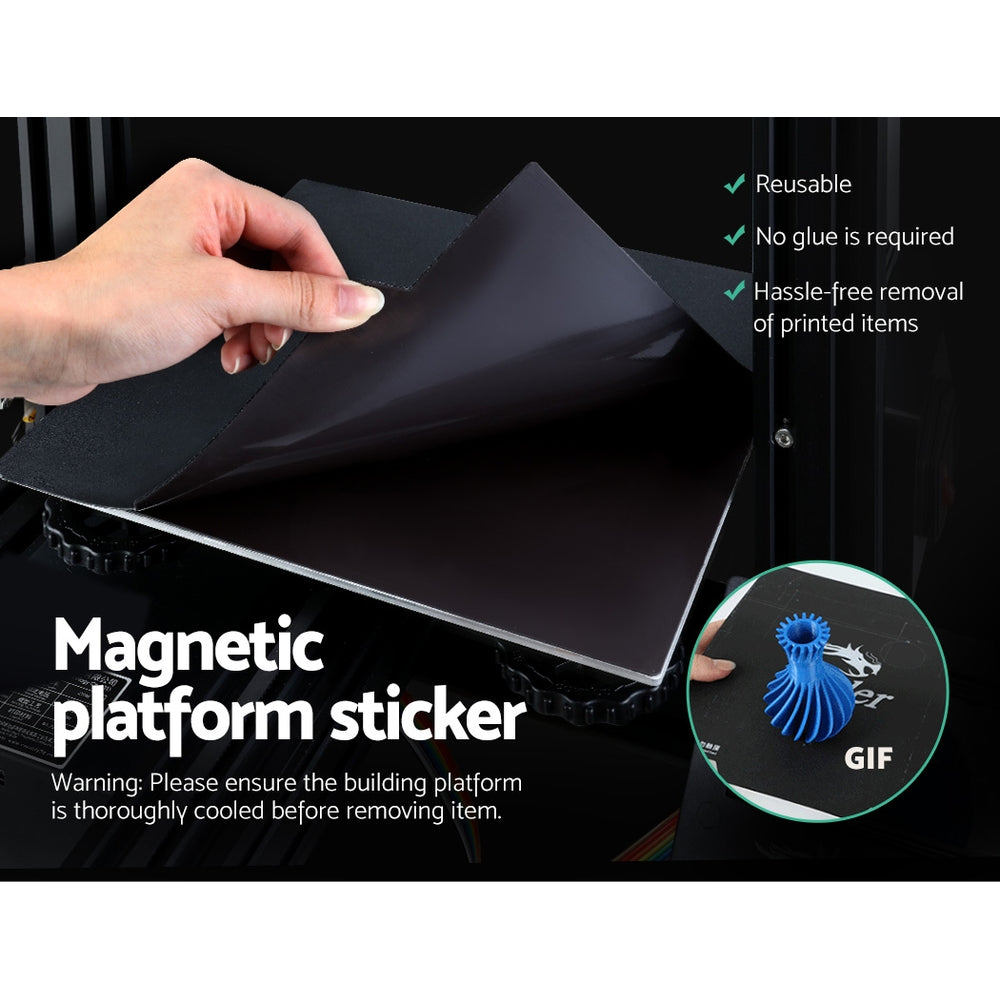 It is no more in the realm of science fiction. Realise your creativity and imagination with our Creality Ender-5 3D Printer. Simple to use and assemble, our 3D printer makes for a high-precision printing process. Utilising advanced technology, the printer features a double Y-axis to reduce vibrations and ensure stability even during extended periods of printing and a V-slot profile for quiet, smooth and durable operation. The simple one-button design allows you to set your printing parameters with minimum hassle and the printer is also designed to resume printing in the event of power outage. The heated build platform only takes 5 minutes to heat up to production temperature and the platform sticker is magnetic for more flexibility and better adhesion. Most importantly, this printer has an upgraded cubic structure with a larger printing size that ever, so that you can bring more of your ideas to life.