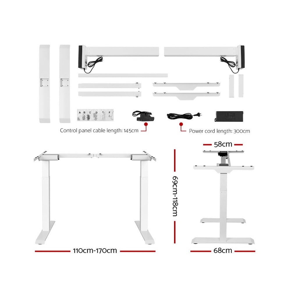 Do not let a standard desk restrict your preferred working posture. You can now have a choice of working while sitting or standing with our Artiss Roskos III Motorised Adjustable Desk. Using its smooth dual motors, the frame can be adjusted up to three preset heights plus a range of desk top lengths and widths to suit your work requirements. With the frame, you can choose to sit when necessary or stand whenever you need to stretch your muscles or recharge your energy level when lethargy sets in from excessive sitting. The desk frame also has a sit/stand reminder system via the easy-to-use control panel. Other notable features include smooth, ultra-quiet operation, low energy consumption, high quality powder-coated frame and components and height-adjustable rubber footings for extra stability. Work smart and stay healthy at work with the motorised adjustable desk.