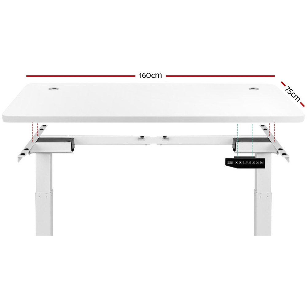 Electric Motorised Height Adjustable Standing Desk - White Frame with 160cm White Top