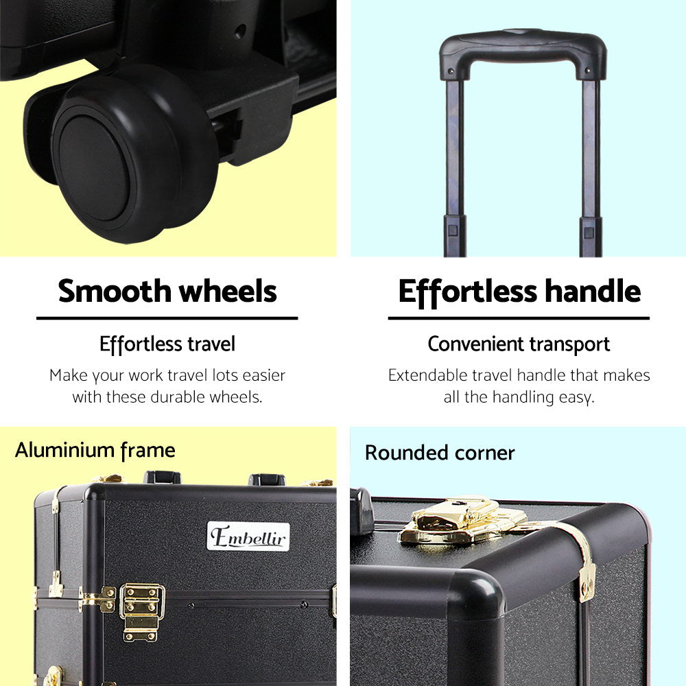 Embellir 7 in 1 Portable Cosmetic Beauty Makeup Trolley - Black & Gold