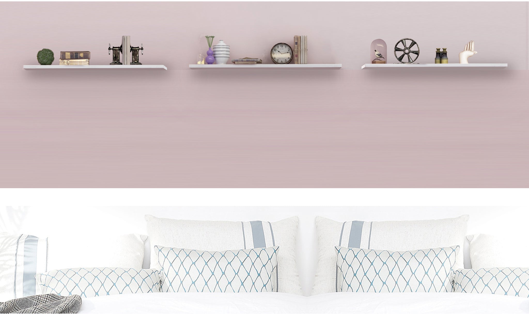 Each 80-centimetre shelf mounts to the wall invisibly with a metal bracket, with no fastenings or wall screws showing—giving the shelves a ‘floating’ appearance. Sleek and unadorned, these shelves are perfect if you want a contemporary look. For shelving that makes your collectables the focus of the display, these shelves are ideal, and can be made to order.