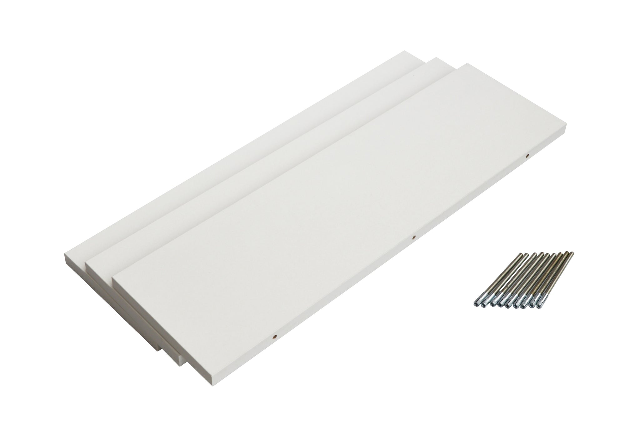 Do you need a streamlined, modern set of shelves to display your collectables and other treasures? This set of three floating wooden wall shelves painted in crisp white from Randy & Travis Machinery is the perfect solution. Crafted from EPB wood and sturdy steel, these shelves are as practical as they are beautiful.