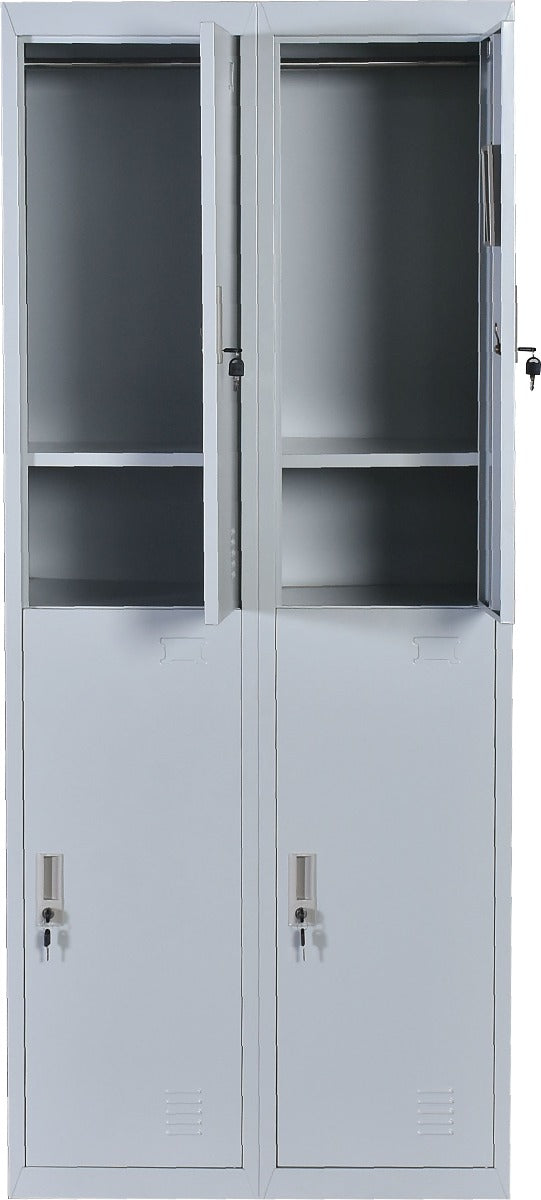 Four spacious lockers are arranged in a compact 2 x 2 grid. They're perfect to store a change of clothes, keep valuables, and store other a variety of personal belongings short-term or long-term.