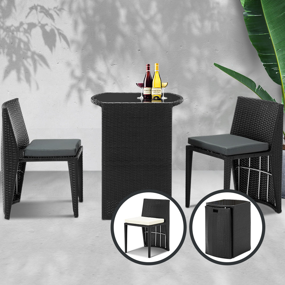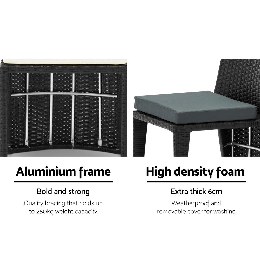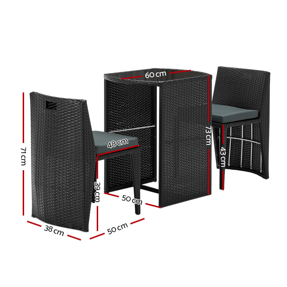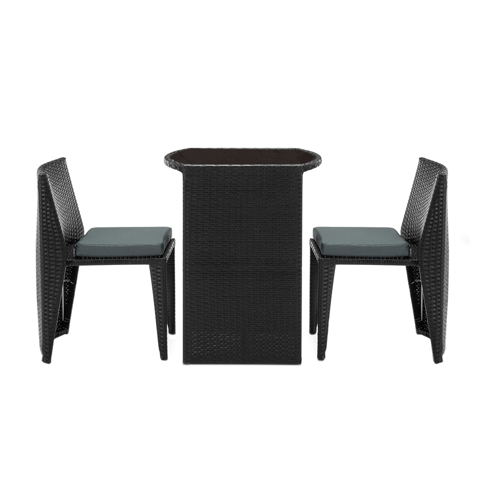 Gardeon 3 Piece PE Wicker Outdoor Table and Chair Set - Black