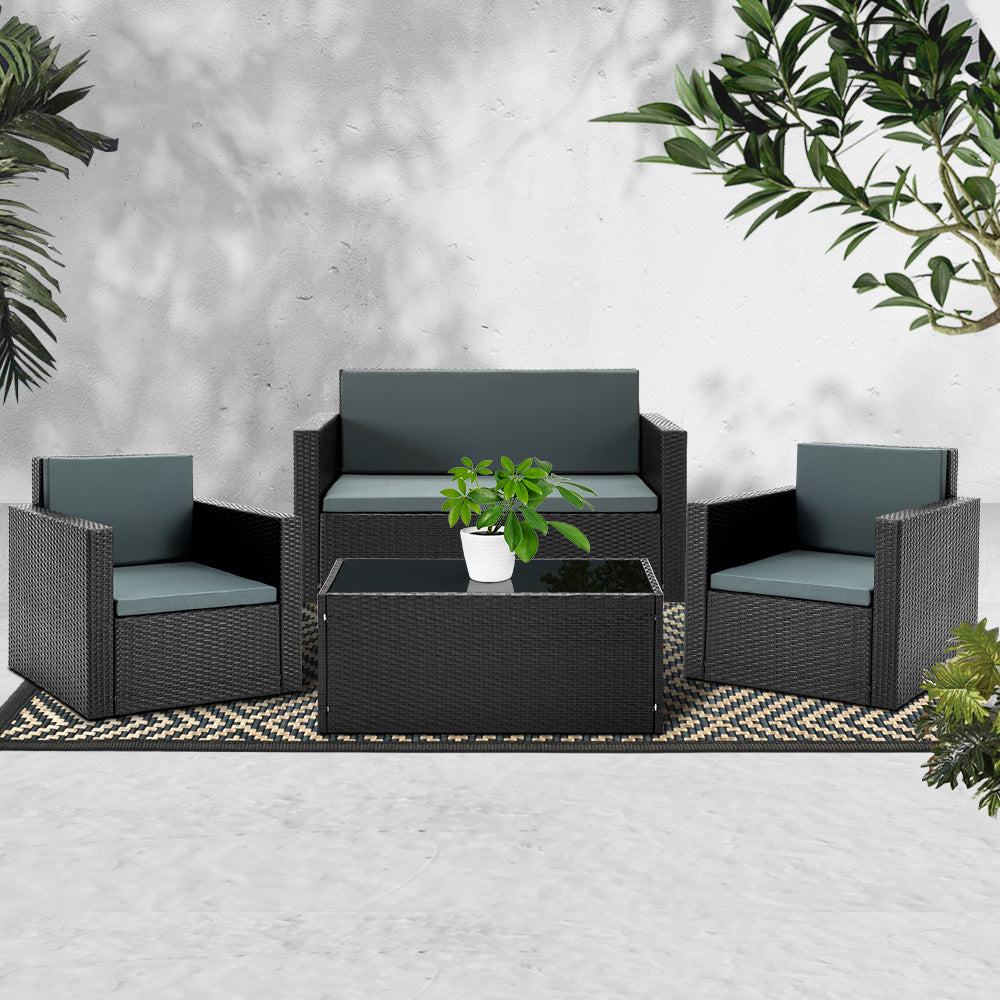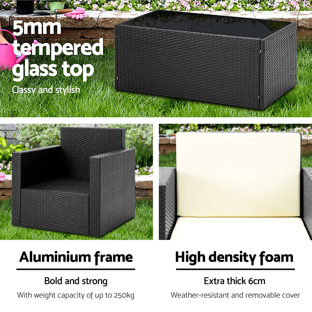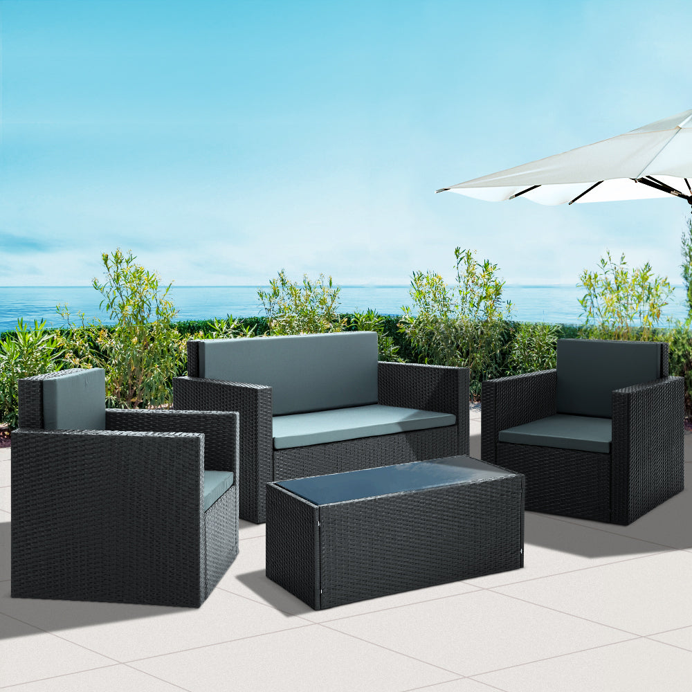 Gardeon 4 Piece Outdoor Wicker Furniture Set - Black