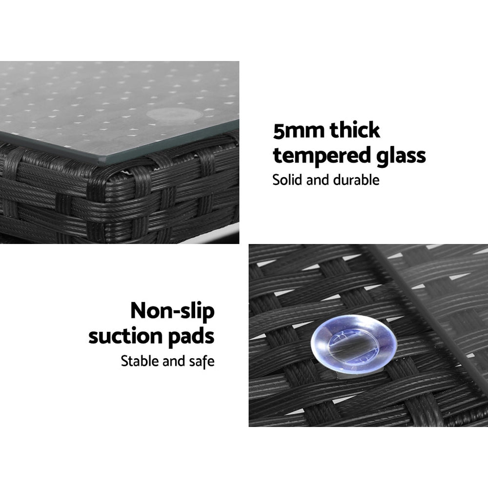 Meticulously crafted, our Gardeon 4-piece Rattan Outdoor Set comprises two armchairs, a two-seater and a matching table for a beautiful integrated look. Its presence will definitely add panache and style to your deck, patio or even living room. Made of eco-friendly PE wicker and a sturdy steel frame, this set is designed to last through all weather and the test of time. The 5mm thick tempered glass top with non-slip suction pads for the table also ensures strong and safe use with total peace of mind. Not least, the cushion covers are removable and washable to maintain their pristine appearance. There is even a bonus storage cover included for you to protect the set from sun and rain when not in use, so that you can keep enjoying your garden parties for many years to come.