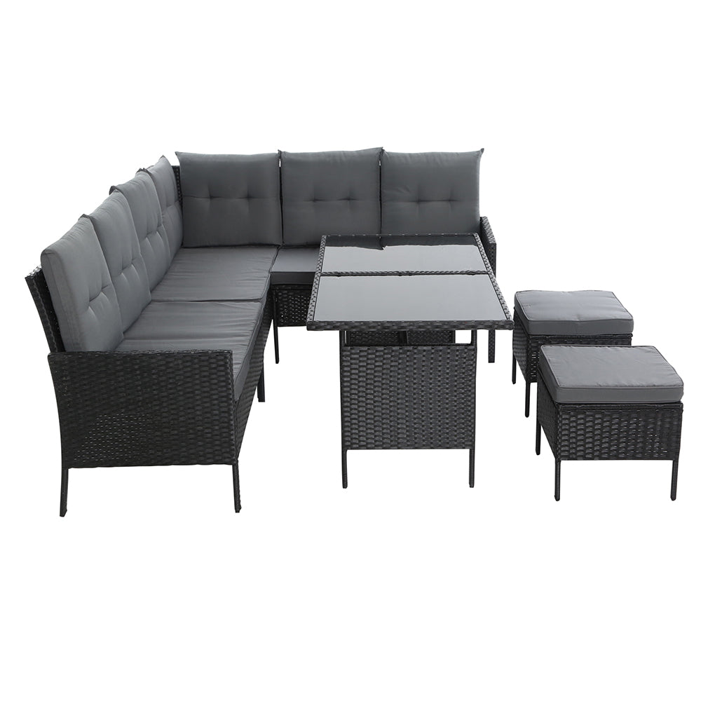 Gardeon Outdoor Furniture Patio Set Dining Sofa Table Chair Lounge Wicker Garden Black