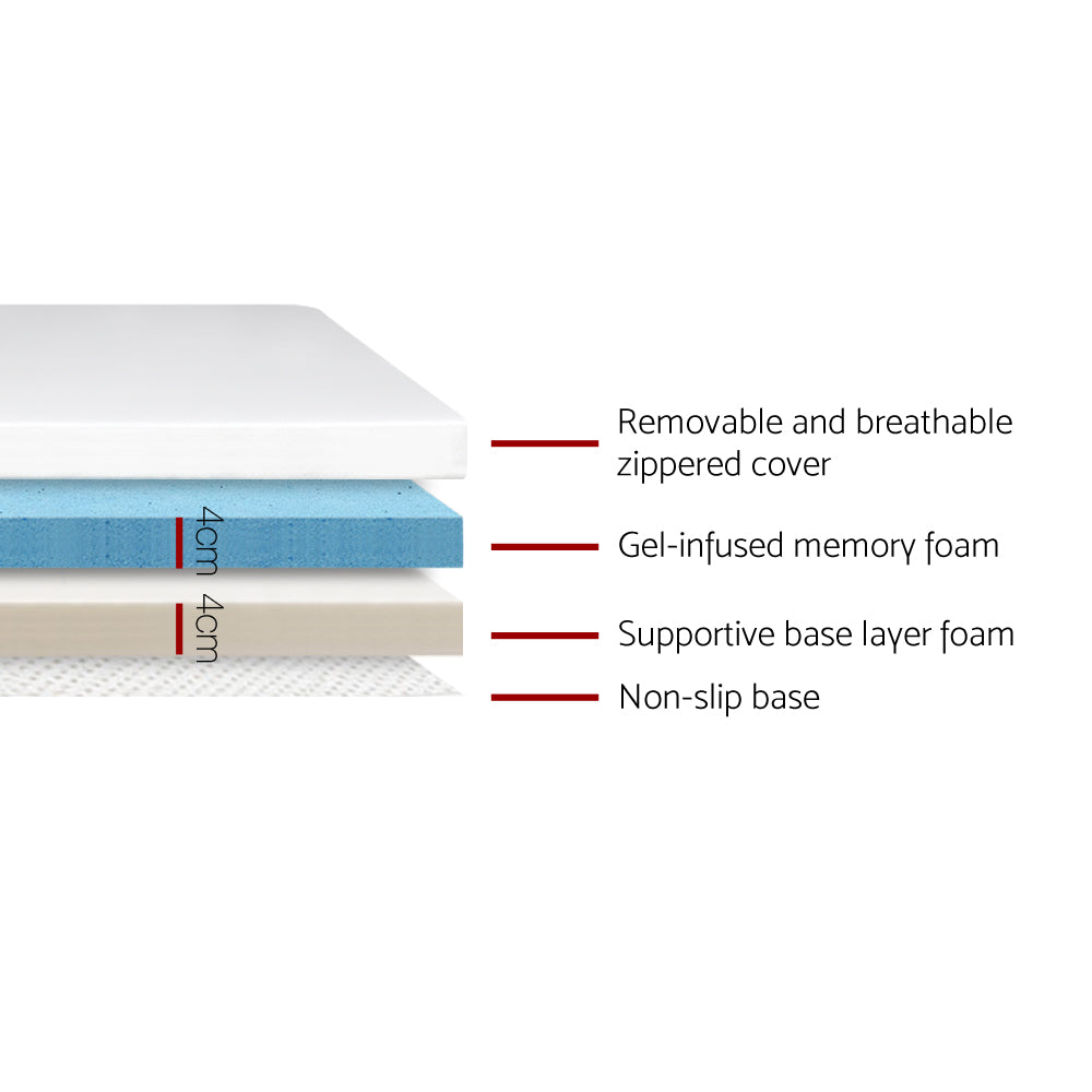 Giselle Bedding Single Size Dual Layer Cool Gel Memory Foam Topper