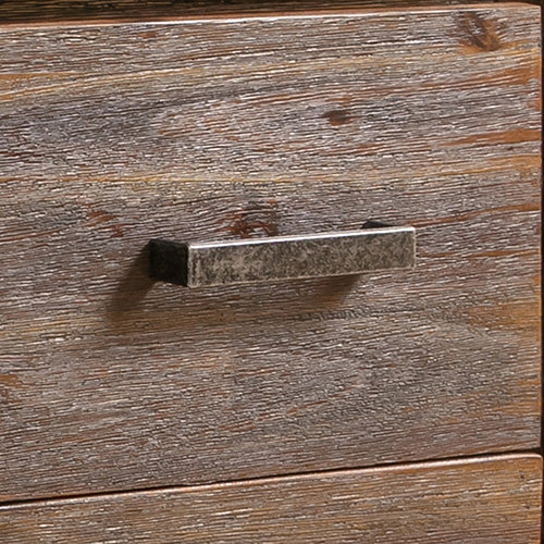 There is a metal made design on the both sides of the hall table to offer a matching look with the handles. Nonetheless, metal wire brushed finish is given to it for a rustic look.