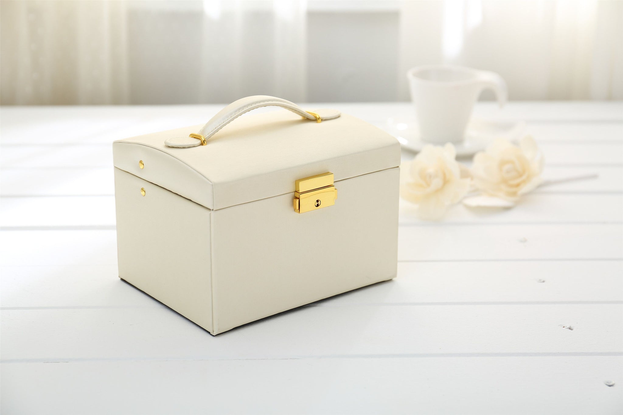 Designed for travelling as well as home storage, this lovely jewellery box features an easy-carry handle so you can take your favourite eye candy with you wherever you go. It locks securely so you never have to worry about someone stealing your favourites.