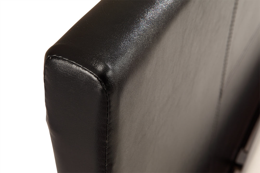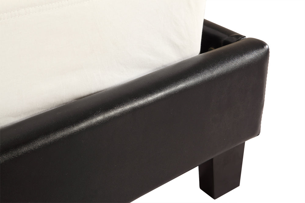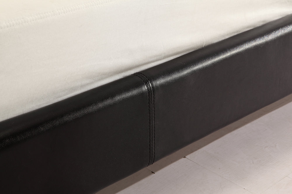The wooden frame and headboard feature a durable PU Leather covering. It's easy to clean, and it's also easy to keep it looking terrific for years and years. Clean, rectangular lines and an attractive stitched design communicate modern elegance and sophisticated style. And the frame and headboard's all-Black look is like a breath of fresh air for any room.