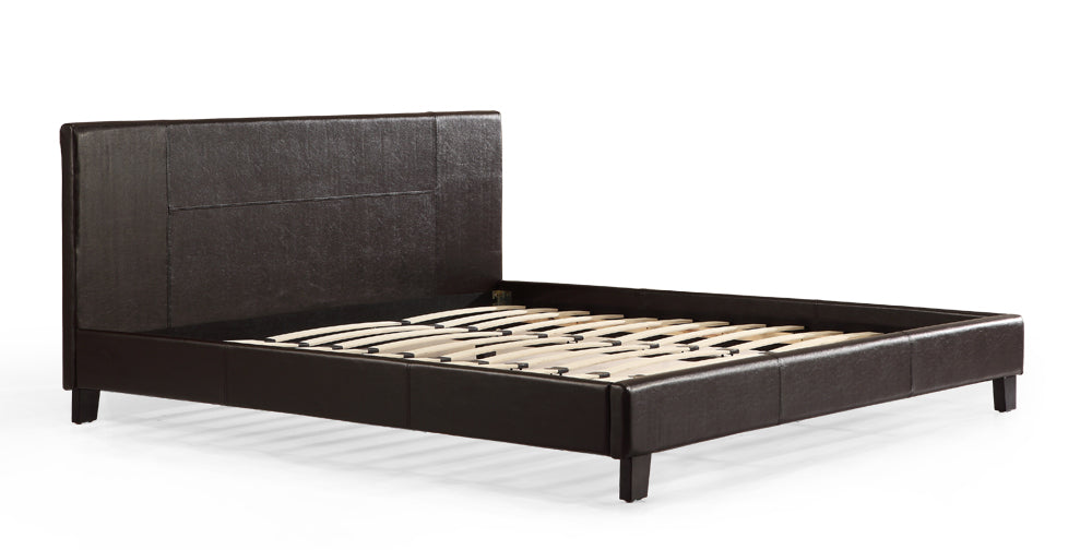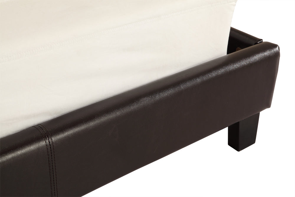 The wooden frame and headboard feature a durable PU Leather covering. It's easy to clean, and it's also easy to keep it looking terrific for years and years. Clean, rectangular lines and an attractive stitched design communicate modern elegance and sophisticated style. And the frame and headboard's all-Brown look is like a breath of fresh air for any room.