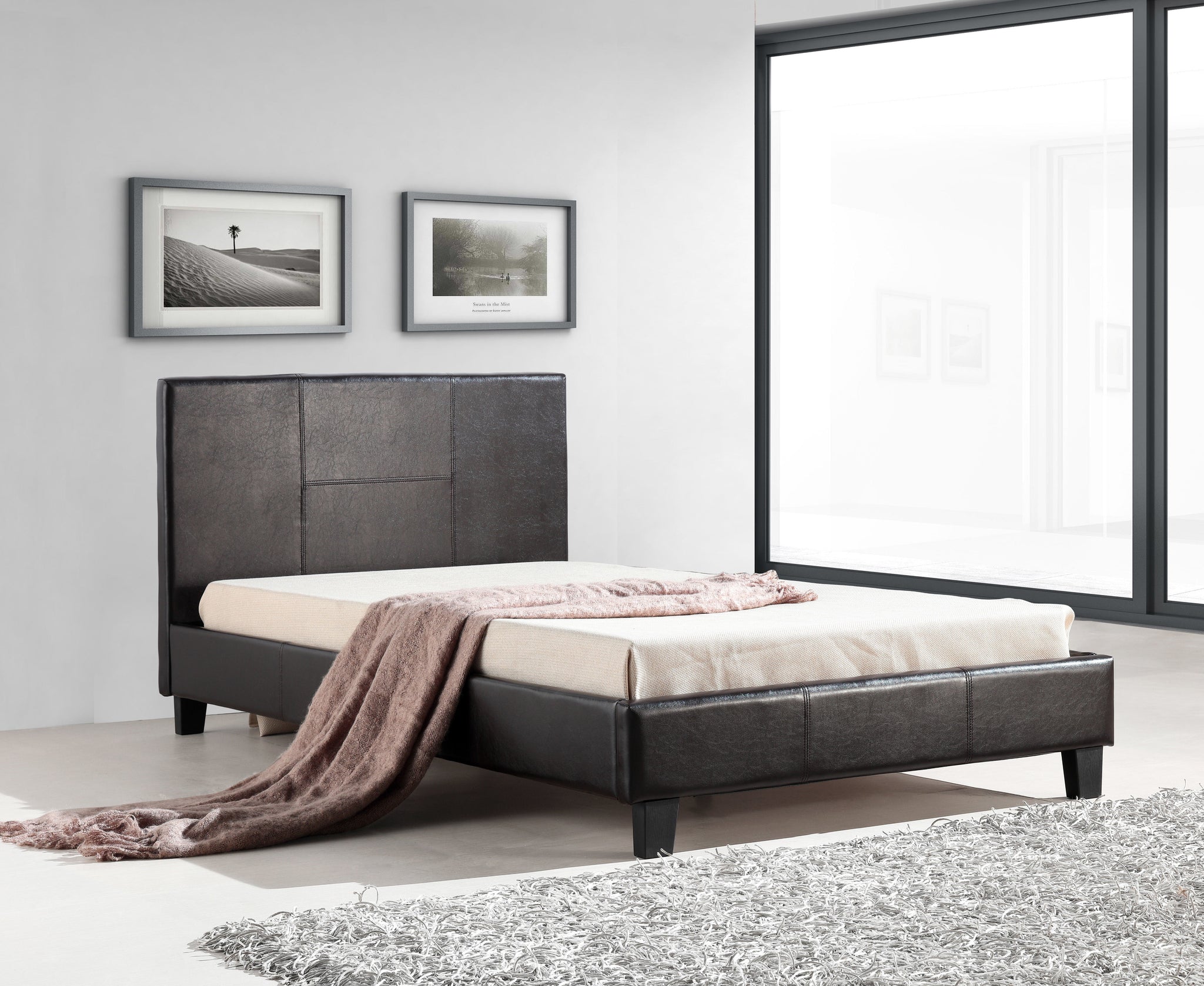 This bed from the expert craftspeople at Palermo measures 115 cm wide by 206 cm long, with a headboard that measures 88 cm tall (10cm leg & 78cm headboard) from top to bottom. It fits a king single mattress measuring 106 x 203 cm. The frame and headboard feature a durable PU Leather covering that's easy to clean and that will look great for many years to come. The headboard is padded for comfort while sitting up and reading or watching TV. An attractive stitched-together look and clean, simple lines make this bed frame a perfect complement to the modern bedroom. And the brown colour adds visual appeal without being ostentatious.