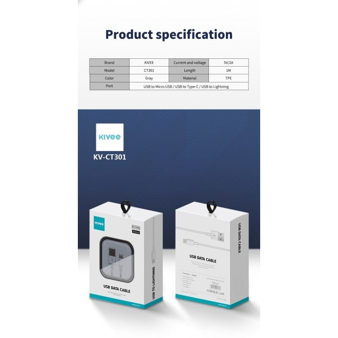 1x KIVEE CT301 iPhone Charging Cable 1M