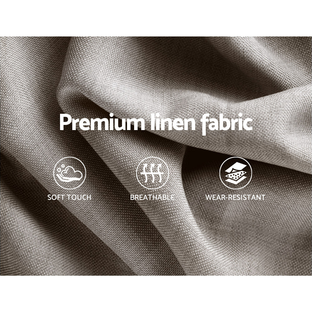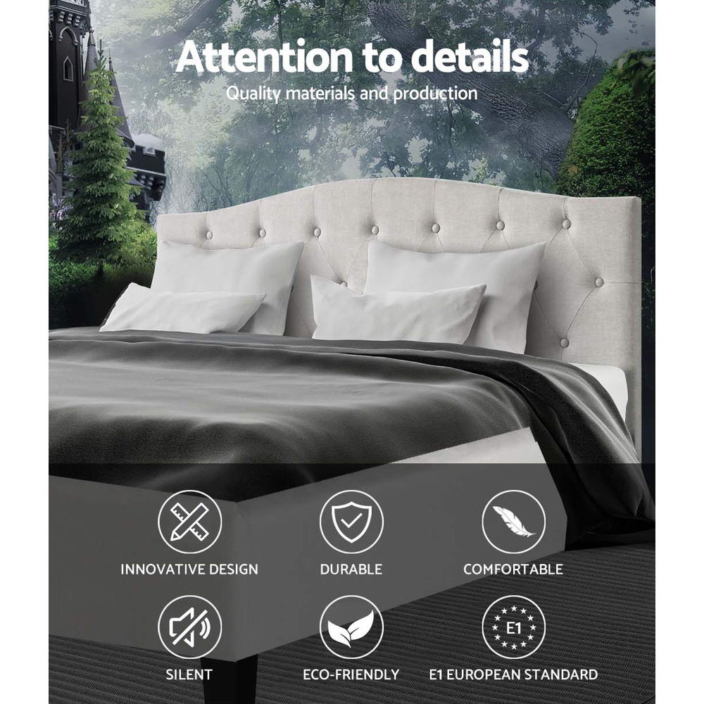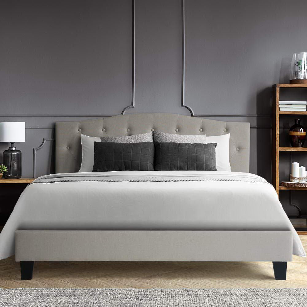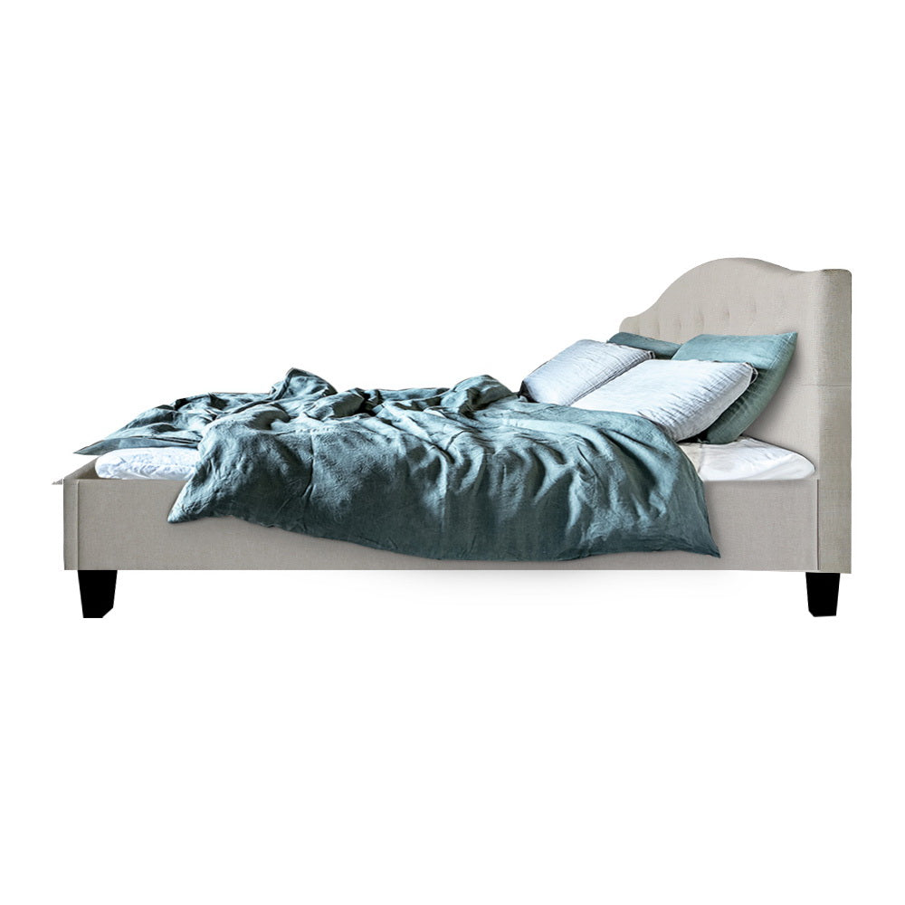 Our contemporary Lars Bed Frame has all the qualities that will make you stop and say WOW! Wrapped in a high quality faux linen fabric for the bedhead and sides; the bed frame exudes class and finesse all round. The large tufted bedhead accommodates reading or watching a movie in bed in total comfort whilst the wooden arched slat base provides a natural elasticity to the support so that it can easily adjust to your sleeping profile. It also eliminates disturbances when two people are sleeping in the bed and someone moves in their sleep. Sturdily constructed with reinforced steel bars and held together with heavy-duty connectors, this bed frame can really do wonders for your precious sleep.