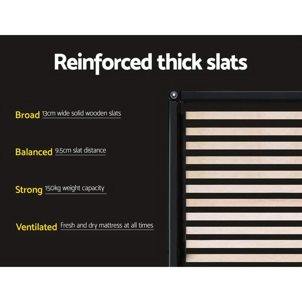 Our contemporary Lars Bed Frame has all the qualities that will make you stop and say WOW! Wrapped in a high quality faux linen fabric for the bedhead and sides; the bed frame exudes class and finesse all round. The large tufted bedhead accommodates reading or watching a movie in bed in total comfort whilst the wooden arched slat base provides a natural elasticity to the support so that it can easily adjust to your sleeping profile. It also eliminates disturbances when two people are sleeping in the bed and someone moves in their sleep. Sturdily constructed with reinforced steel bars and held together with heavy-duty connectors, this bed frame can really do wonders for your precious sleep.