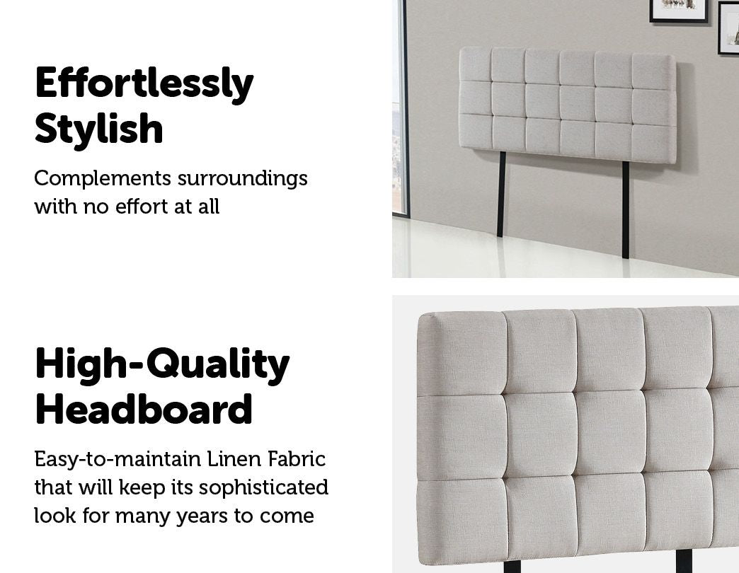 Linen Fabric Double Bed Deluxe Headboard Bedhead - Beige