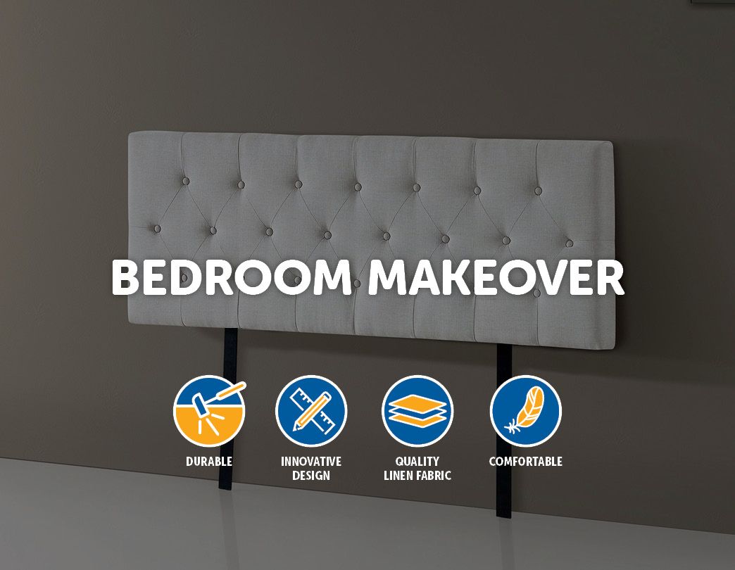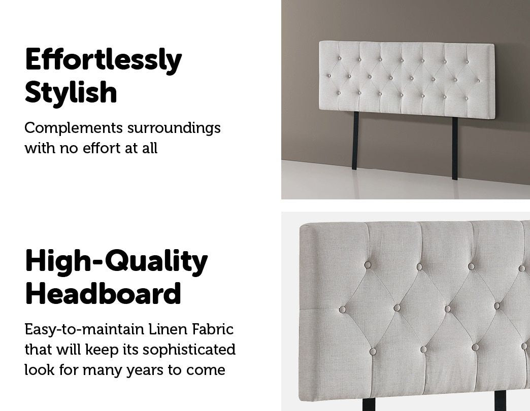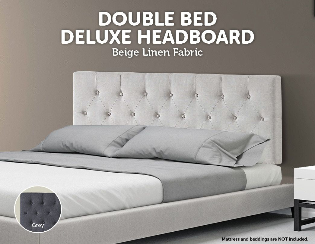 Linen Fabric Double Bed Deluxe Headboard Bedhead - Beige