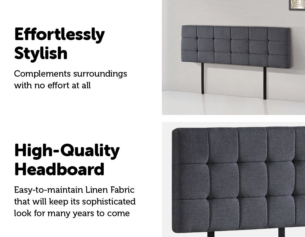 Linen Fabric King Bed Deluxe Headboard Bedhead - Grey
