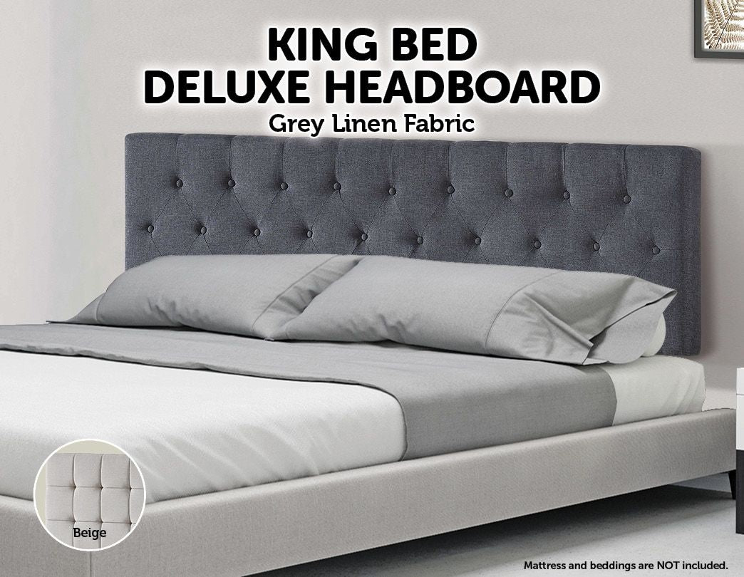 Linen Fabric King Bed Deluxe Headboard Bedhead - Grey