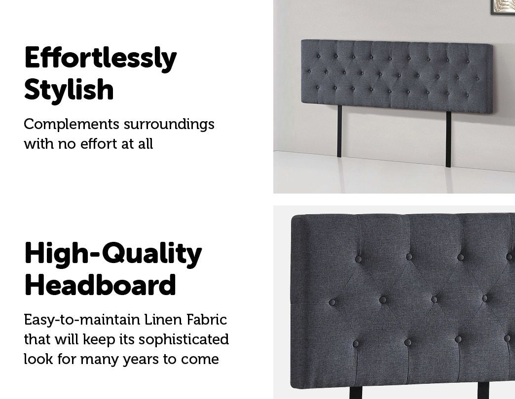 1 xLinen Fabric King Bed Deluxe Headboard Bedhead - Grey