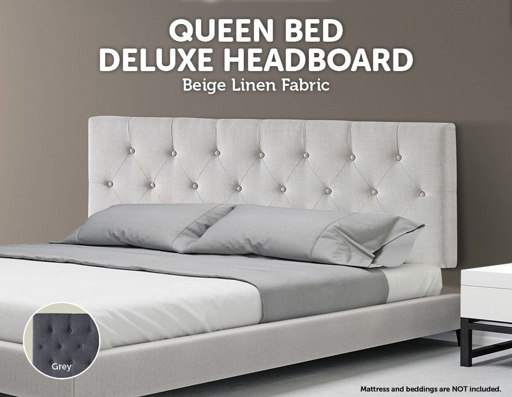 Linen Fabric Queen Bed Deluxe Headboard Bedhead - Beige