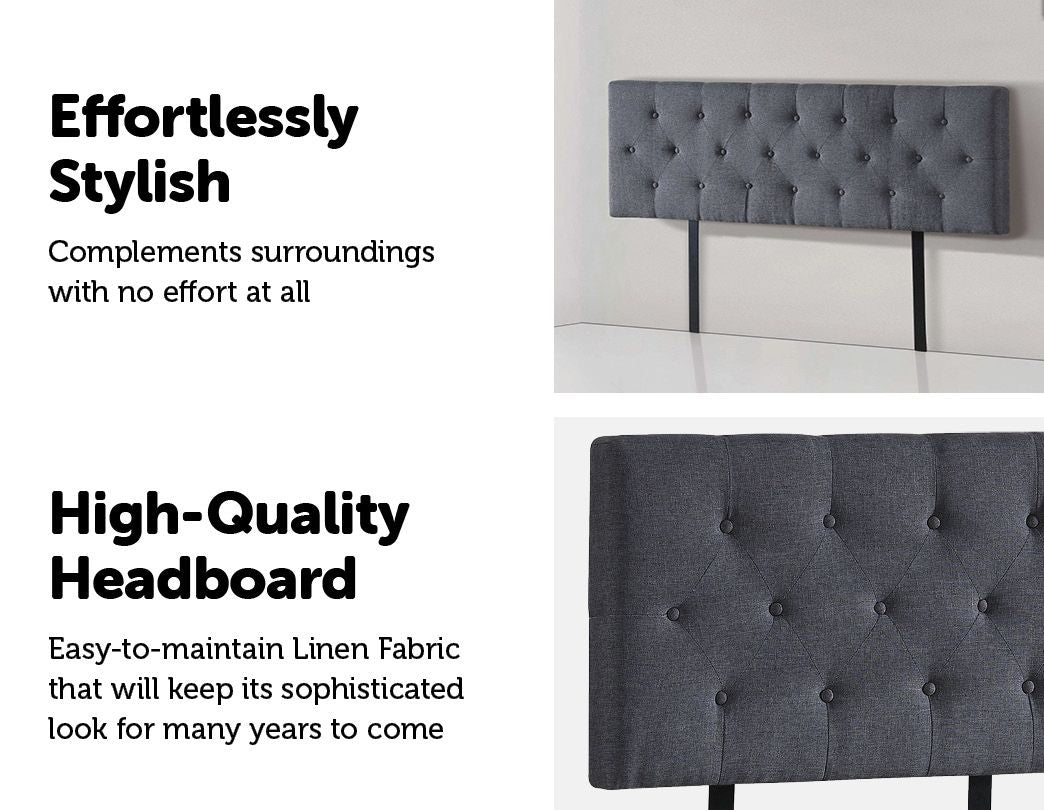 Linen Fabric Queen Bed Deluxe Headboard Bedhead - Grey
