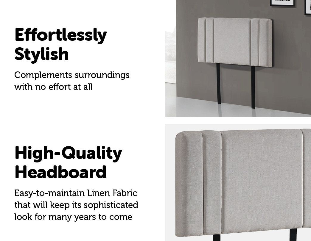 Linen Fabric Single Bed Deluxe Headboard Bedhead - Beige