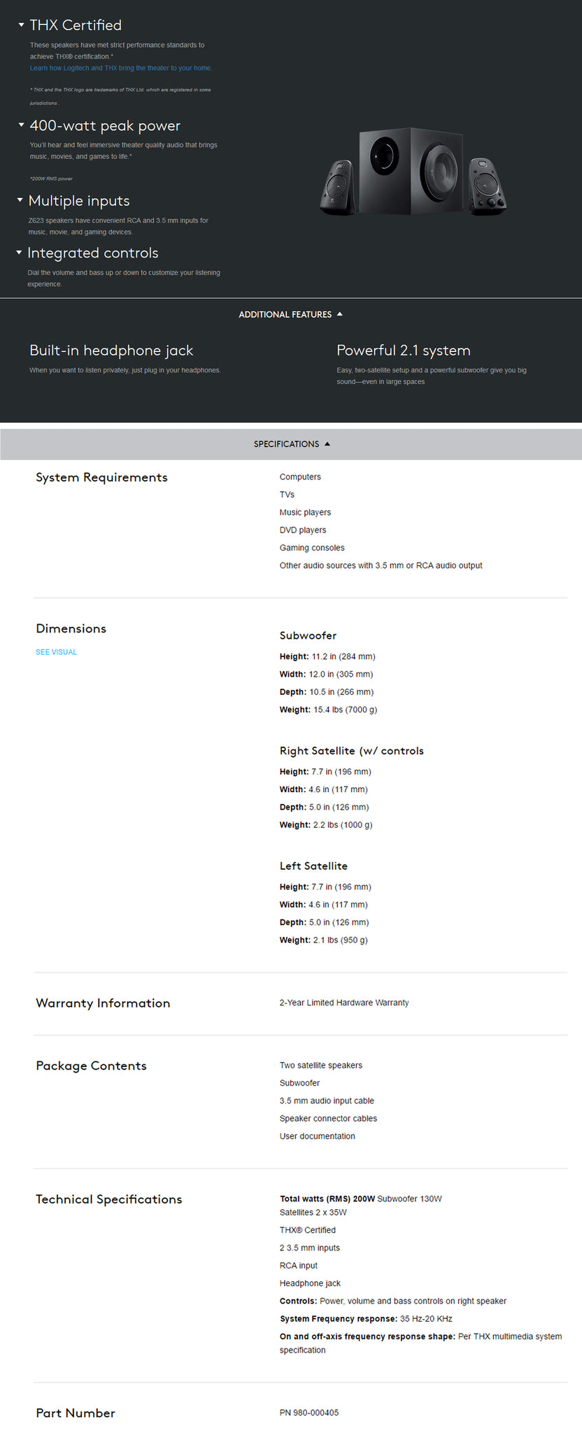 Logitech Z623 2.1 THX Certified Gaming Speakers